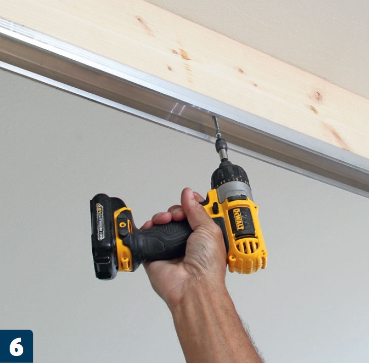 Kiinnitä seuraavaksi alumiinikisko lankun alapintaan. Käytä asentamiseen noin 50 milliä pitkiä, pyöreäkantaisia ruuveja.