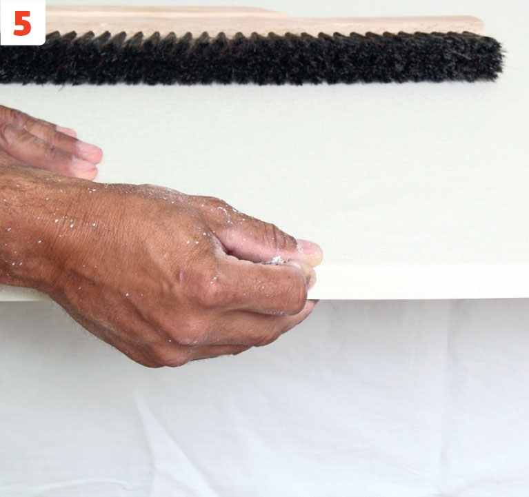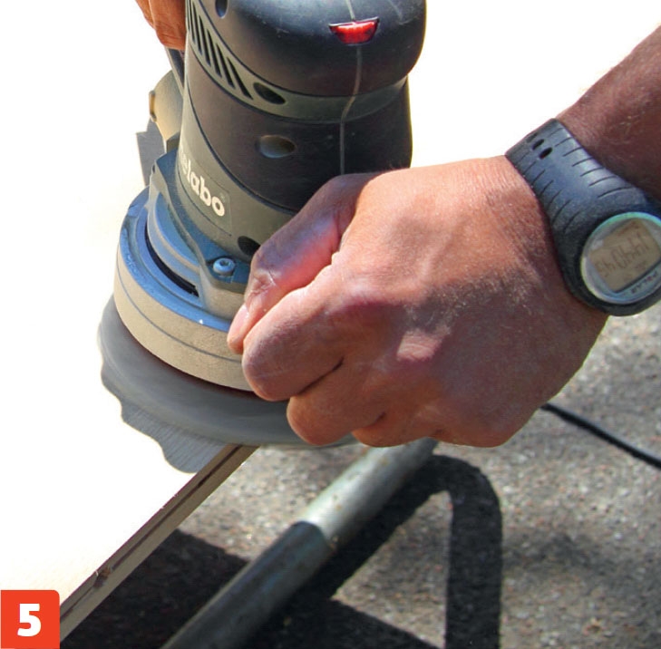Hio kaikki pinnat hieno-jakoisella hiomapaperilla, kun tasoite on kuivunut. Hiomapaperi kannattaa kääriä puukapulan ympäril-le, jotta pinnasta tulee mahdollisimman tasainen.