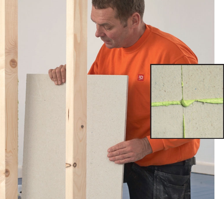 Kun levyt on asennettu, tarvitaan eri-koissaumaliimaa, jolla saumoista saadaan erityisen vahvat. Levyt ovat kooltaan 90 x 120 cm ja ne asennetaan vaakaan. Tämä sopii soirojen etäisyyksiin.