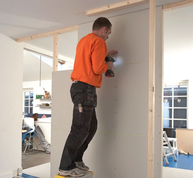 Ensimmäiseksi kannattaa tehdä työpiirustukset. Voit käyttää niitä mittauksissa ja tehdessäsi merkintöjä lattiaan, seinään ja kattoon, jotta tiedät jatkuvasti väliseinän tarkan paikan. Me rakennamme seinän puurungon varaan. Rungon voi tehdä myös teräksestä, jolloin työstä selviää ehkä hieman nopeammin, mutta toisaalta materiaali on kalliimpaa.