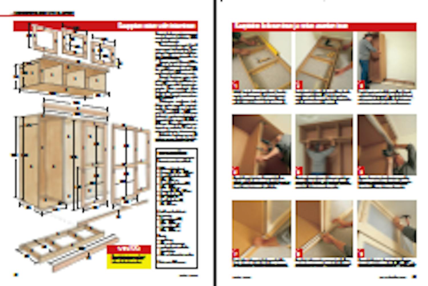 Ovien liukukiskoja ja pyöräs-töjä hankittaessa pitää var-mistaa, että kaikkien osien kuormituskestävyys on kyllin suuri.Tässä tapauksessa kan-tavuusongelmia ei ollut, sillä ovista tulee muovilevypeilien takia erittäin kevyitä. Toista olisi, jos ne tehtäisiin esim. 15 mm lastulevystä.