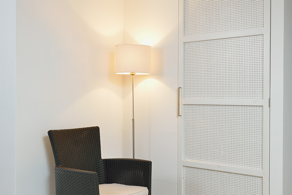 Kiinnitä puurungon alareuna karmitulpilla lattiaan. Poraa ensin kaksi karmitulpille sopivaa reikää puun läpi lattiaan. Naputa tulpat sisään ja ruuvaa ruuvit kiinni.