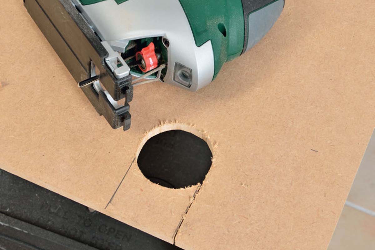 Poraa levyyn ensin pyö reä reikä ja sahaa tämän jälkeen mahdolliset aukot ja reiät pistosahalla.