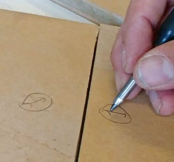 Jyrsi kolot pohjaan ja kattoon eli osiin (A) työpöydällä. Tarkista, että osat ovat oikein päin. Katon pitää olla jyrsimisen aikana alapuoli ylöspäin ja pohjan alapuoli alaspäin.
