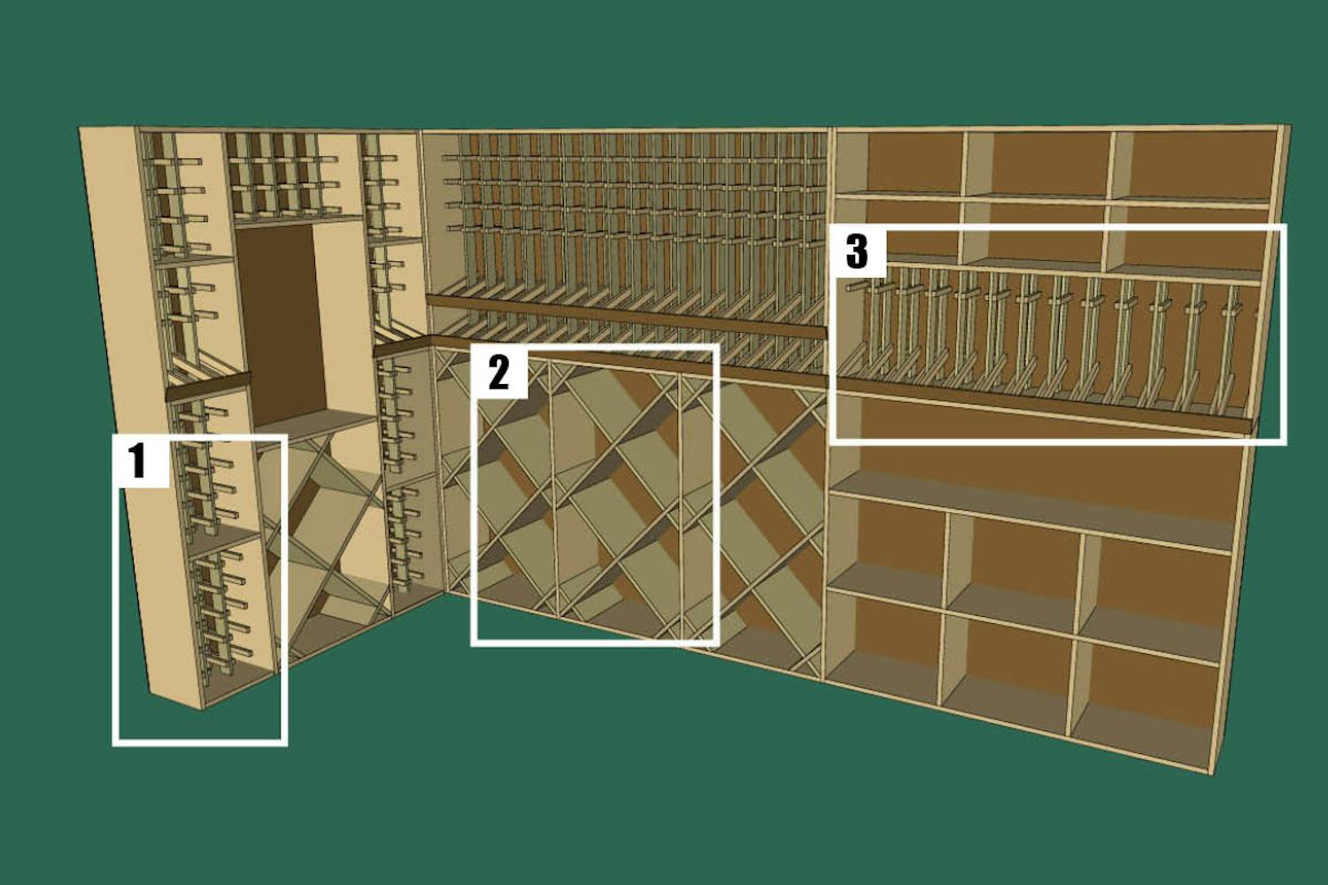 Näitä ohjeita ei ole laadittu tietylle hyllymäärälle, joten voit säätää viinihyllyn kokoa ja mallia mielesi mukaan. Näytämme periaatteet, joita voit soveltaa hyllyjen rakentamiseen.