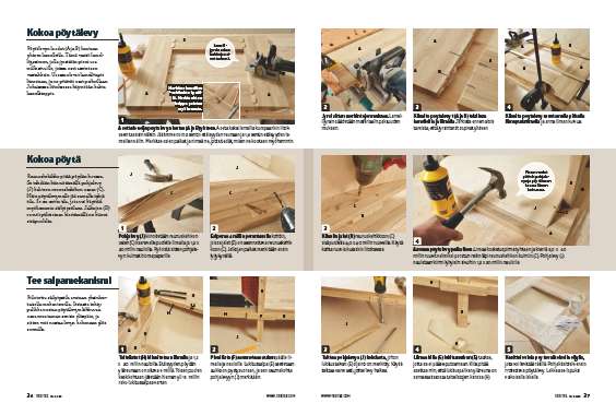 Kiinnitä pöytälevyt (A ja B) toisiinsa lamelleilla ja liimalla. Tarkista ennen aloittamista, että jyrsinterät sopivat yhteen.