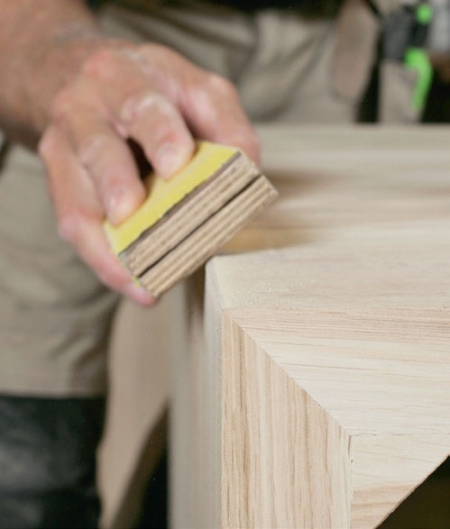 On täysin makuasia, miten kulmat haluaa viimeistellä. Esimerkissä pyöristämme reunat kevyesti hiomapaperilla niin, että ne kuitenkin ovat yhä terävät eli reunat niin sanotusti ”niistetään”.