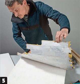 Sahaa kapulat 6 milliä paksuiksi siivuiksi. Kaikilla sahoilla ei voi sahata niin ohuita kaistaleita, vaan etäisyyttä pitää säätää pitämällä ohjaimen ja terän välissä puukapulaa.