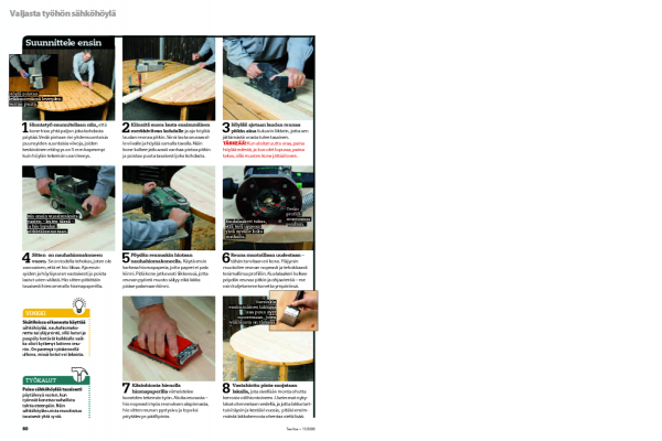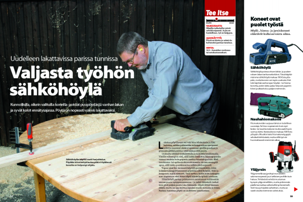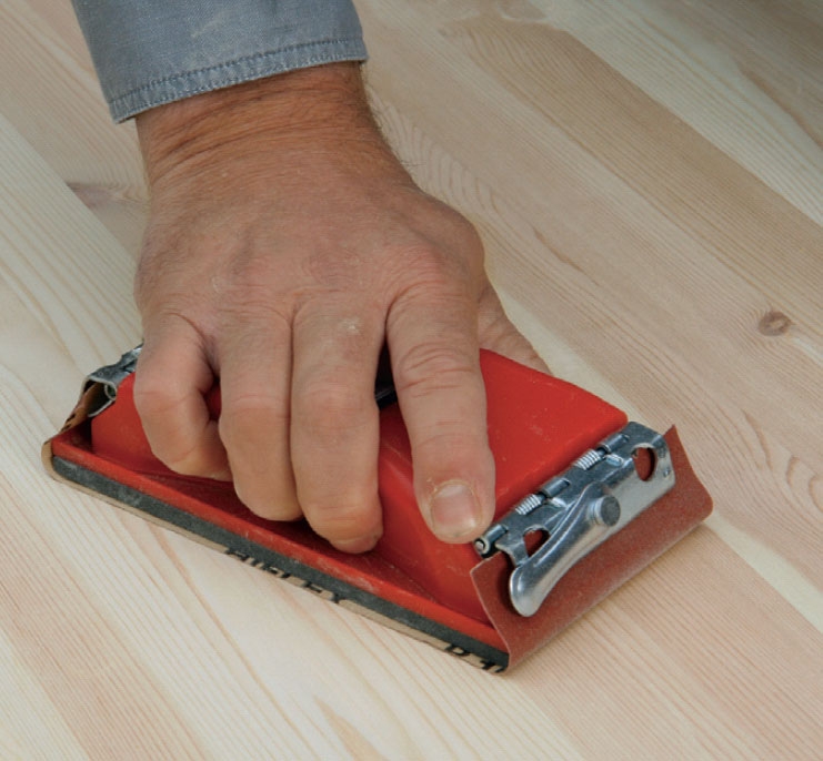 Käsinhionta hienolla hiomapaperilla viimeistelee koneiden tekemän työn. Aloita reunasta - hio nopeasti myös reunuksen alapinnasta, hio sitten reunan pystysivu ja lopuksi pöytälevyn päällipinta.
