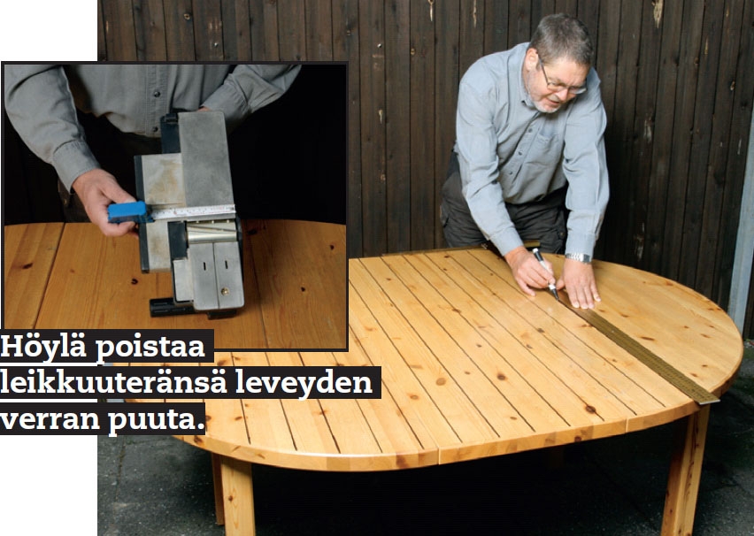 Hiontatyö suunnitellaan niin, että kone hioo yhtä paljon joka kohdasta pöytää. Vedä pintaan rivi yhdensuuntaisia puunsyiden suuntaisia viivoja, joiden keskinäinen etäisyys on 5 mm kapeampi kuin höylän tekemän uran leveys.