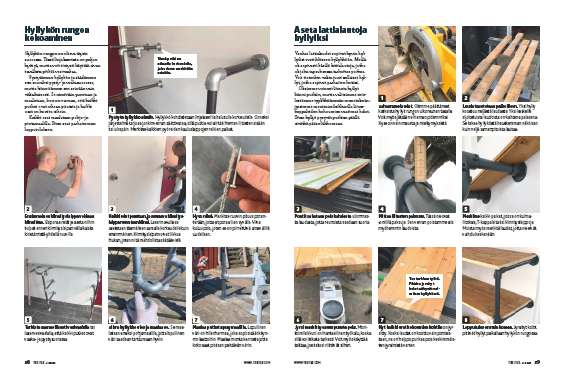 Putkiliitokset ovat melko yksinkertaisia tehdä, jos osaat käsitellä kulmahiomakonetta. Työläintä on hyllyjen kolojen jyrsiminen.