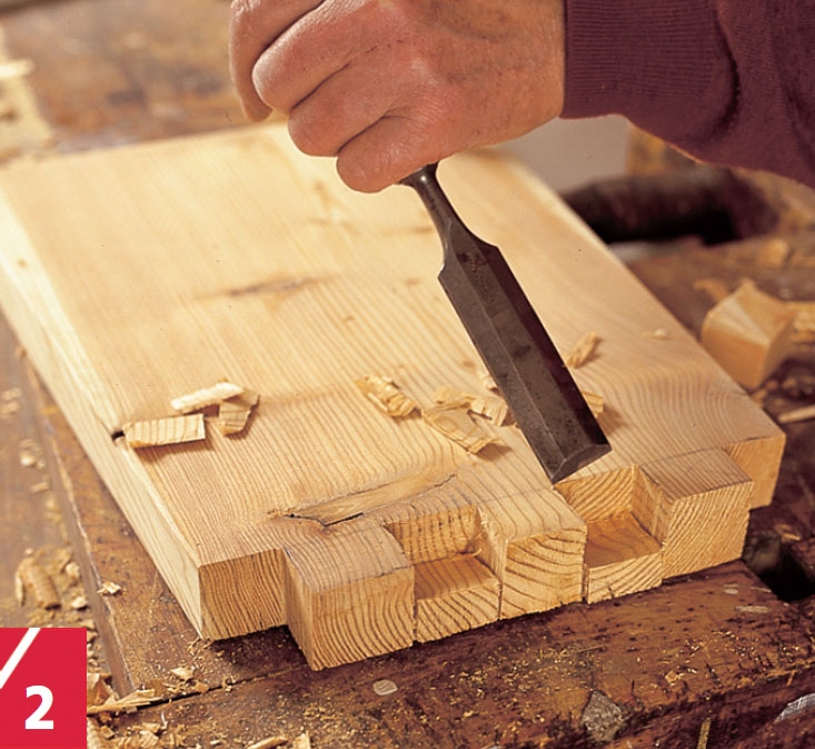 Istuimen kumpaankin päähän tulevat kolme koloa koverrat taltalla. Naputtele puunsyihin nähden poikkisuuntaan vuoroin molemmilta puolilta. Talttaa lopuksi pois keskelle jäänyt pieni harjanne. Kolot ulottu-vat 8-10 mm päähän penkin yläpinnasta.