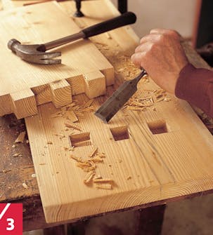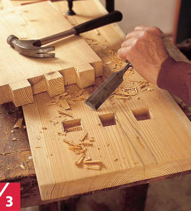 Kuvien penkki koottiin näkymättömiin jäävällä tappiliitoksella, mutta voit tehdä liitokset muillakin tavoilla.