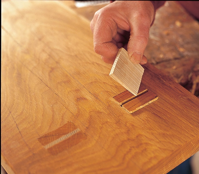 Menetelmä on ajalta ennen liimojen keksimistä. Kiilaa saattoi aina naputtaa hieman syvemmälle tai rakoon lyödä uuden kiilan, kun liitos alkoi löystyä. Tee istuimen läpi normaalisti tappien reiät ja iske jalat paikoilleen. Tappien päät painetaan puukolla tai taltalla halki ja reikiin lyödään kiilat. Saman voi tehdä piilotapillekin. Sen päähän asetetaan kiila ennen kuin tappia (jalkaa) ruvetaan iskemään paikalleen. Tapin reiän pohja painaa kiilan syvälle tapin halkioon.