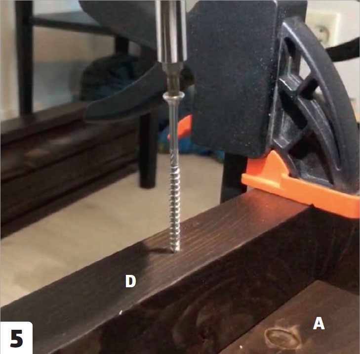 Asenna päätyosat (D) lyhimpien ylälautojen (A) alle. Muista ruuvata päätyosien alapuolelta, jotta päätylautoihin ei jää näkyviä ruuvinkantoja.