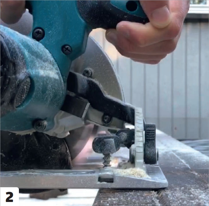 Sahaa käsisirkkelillä urat viivoja pitkin. On tärkeää, että syvyysrajoitin on säädetty tarkasti oikein rimojen paksuuden mukaan.
