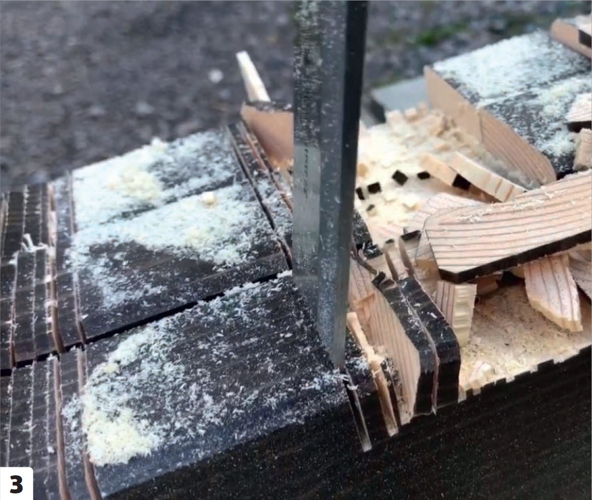 Se on hieno yksityiskohta, joka on helppo tehdä. Merkitse rimojen paikat pohjapalkkeihin, säädä käsisirkkelin syvyysrajoitin oikein ja sahaa urat viivoja pitkin. Tee lopuksi lovet terävällä taltalla ja siisti niiden reunat.