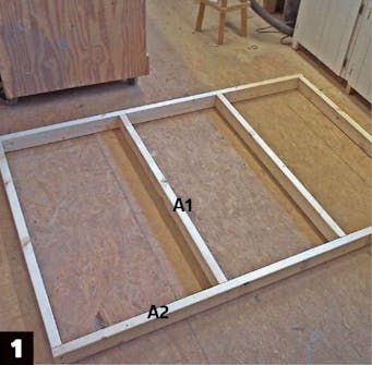 Rakenna sokkeli (A1 + A2) 45x95 millin lankuista. Aseta lankut lattialle ja tarkista, että ne ovat oikean kokoiset. Ruuvaa ne sitten yhteen.