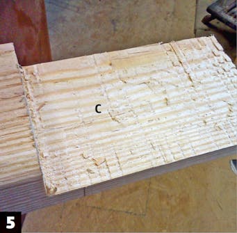 Tee lapaliitos osaan (C). Loven syvyys on 22,5 milliä. Merkitse pois sahattava osuus selkeästi, jotta et sahaa pois väärää puolta.