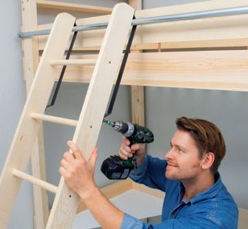 Lakkaa raudat tarvittaessa ja kiinnitä ne tikkaiden ja liukumäen taakse 5 x 40 mm ruuveilla. Esiporaa 3,5 mm poralla, jotta puu ei halkea.