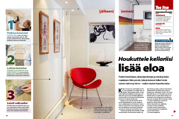 Katon alla olevat vaakaputket keräävät pölyä ja hallitsevat montaa kellaria. Niiden piilottaminen siististi ja turvallisesti ei kuitenkaan ole vaikeaa.