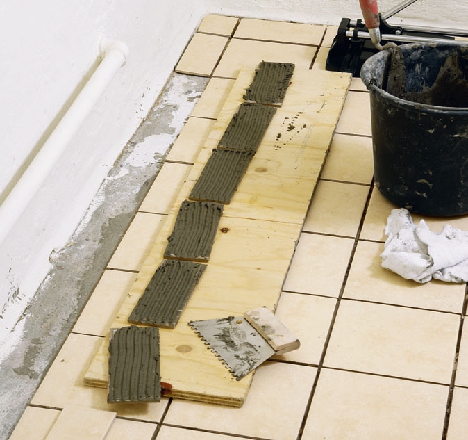 Harjoittelun jälkeen voit levittää laastia isommalle alueelle, ehkä 6-8 laatalle, mutta ole kärsivällinen äläkä koskaan levitä laastia enemmän kuin pystyt laattoja asentamaan, sillä laastiin syntyy tällöin helposti vaalea kalvo.