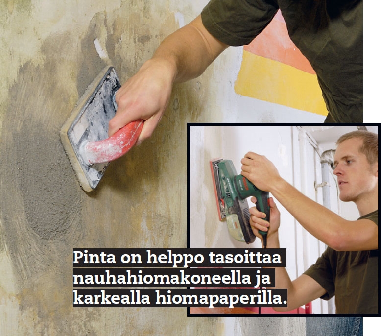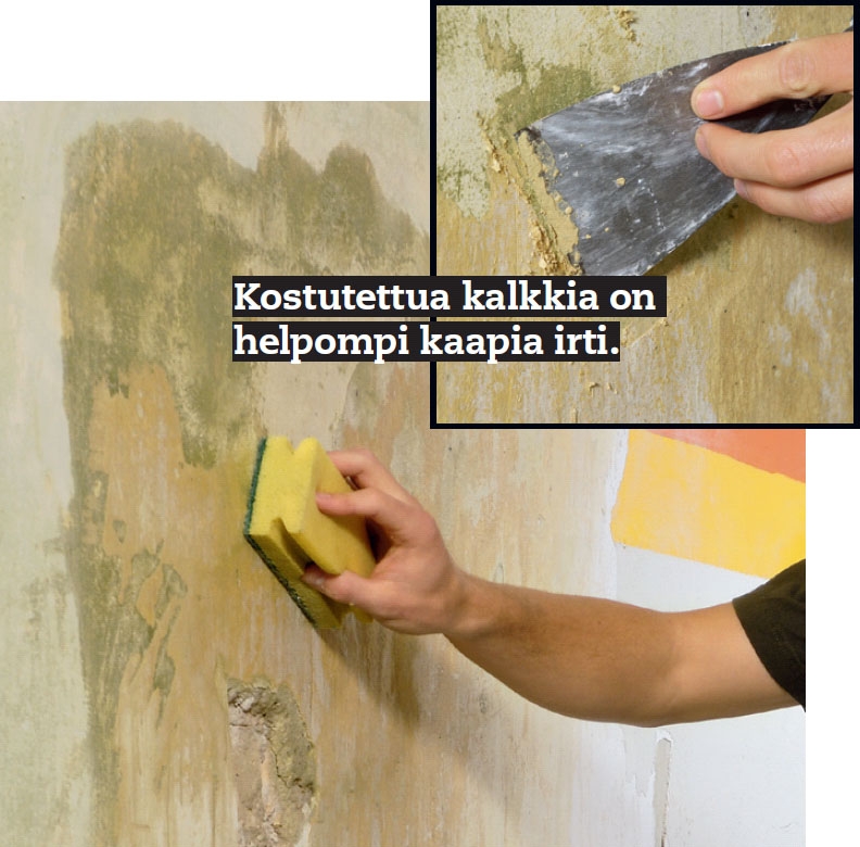 VINKKI: Kun et enää saa enempää kalkkia poistettua, sivele seinään kiinnittävä poh-juste, niin loput kalkkijäänteet eivät leviä.