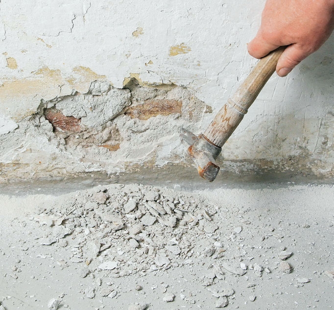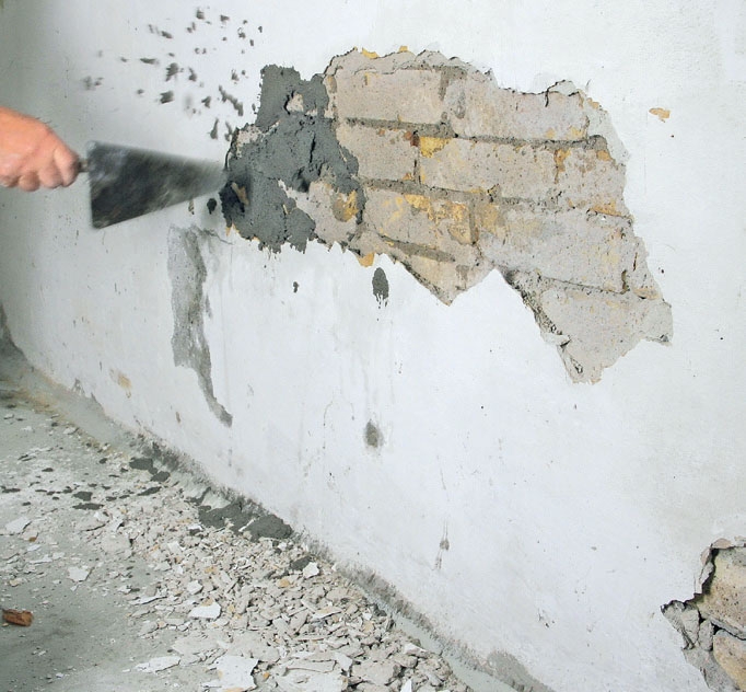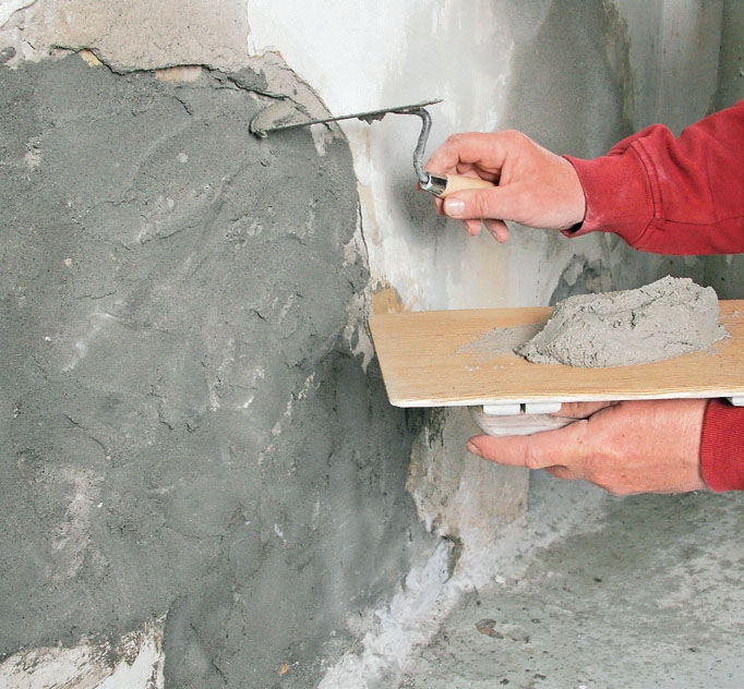 Muurarin perustekniikan hallitsemisesta on paljon apua, ja pienemmistä vaurioista voi selvitä kostuttamalla alustan huolella ja levittämällä ensin ohuen laastikerroksen. Kun se on kuivunut, seuraava paksumpi kerros kiinnittyy helpommin painovoimasta huolimatta.