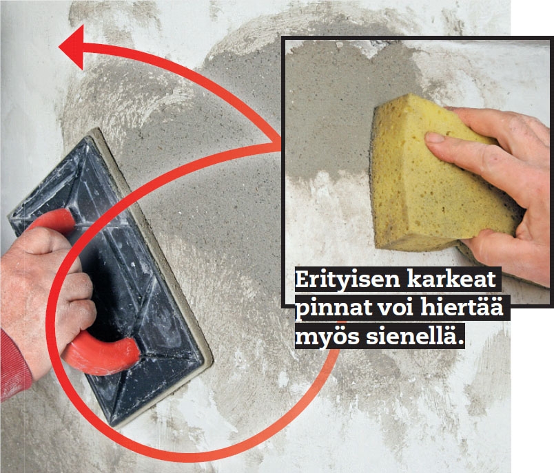 Viimeistele pinta tämän jälkeen käyt-tämällä ohuempaa rappauslaastia.