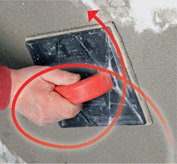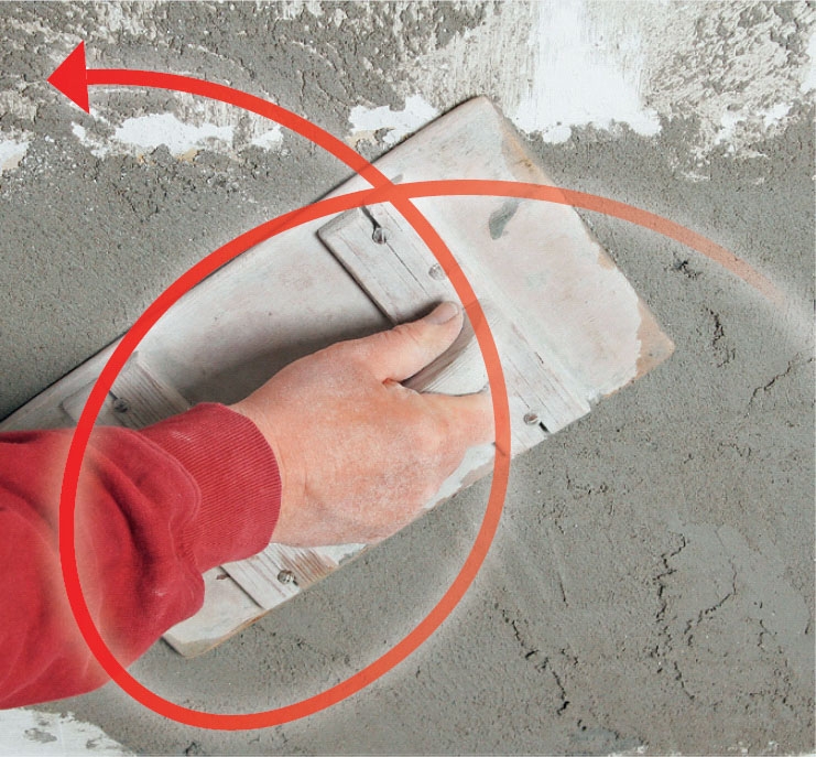 Rappauslaasti levitetään ensin alueen reunoille, jotta reunat tasoittuvat. Paina laastia kunnolla pintaan, jotta siihen ei jää avonaisia aukkoja, ja täytä samalla tavalla muut mahdolliset kolot ja syvänteet.
