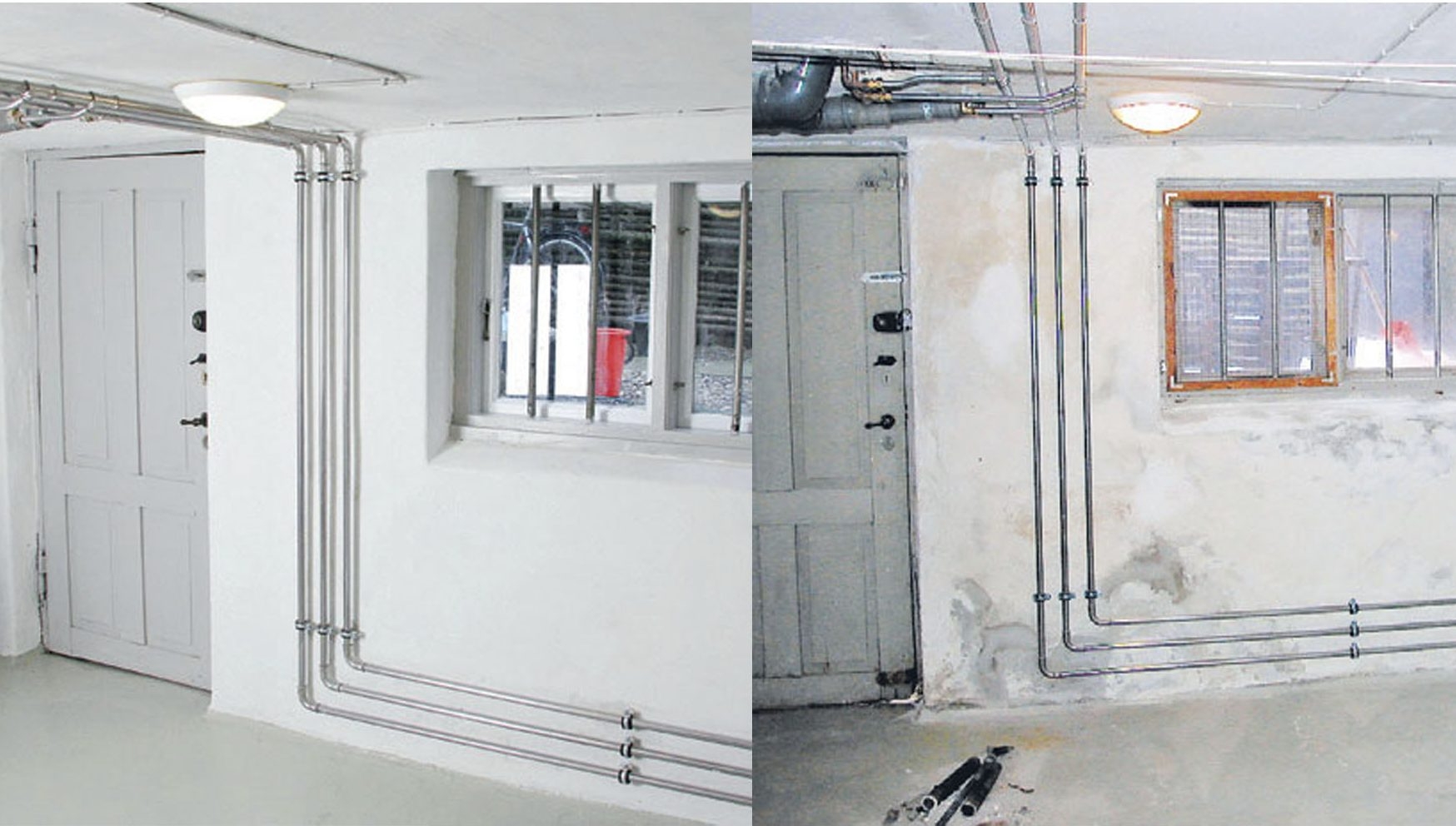Useimmat vahvat kellarinseinät ovat hyvin perinteisen näköisiä: hieman kuh-muisia ja karkeita pinnaltaan. Tätä ei tarvitse muuttaa, ja jos et halua rapata koko kellaria uusiksi, saat lopputulok-sesta siisteimmän jäljittelemällä ympä-rillä olevaa vanhaa pintaa.