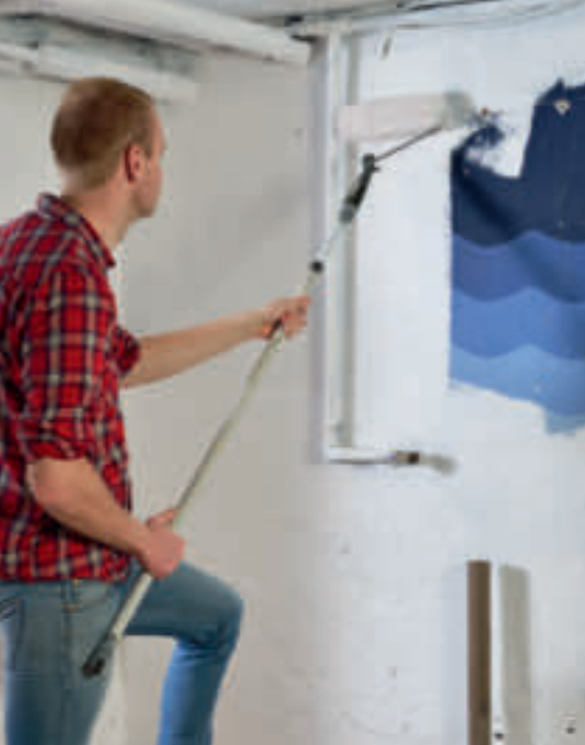 Kulunut kellari ei ollut vain sotkuinen, vaan myös pimeä ja kolkko seinien ja lattian voimak-kaista väreistä huolimatta. Työ aloitettiin niistä.