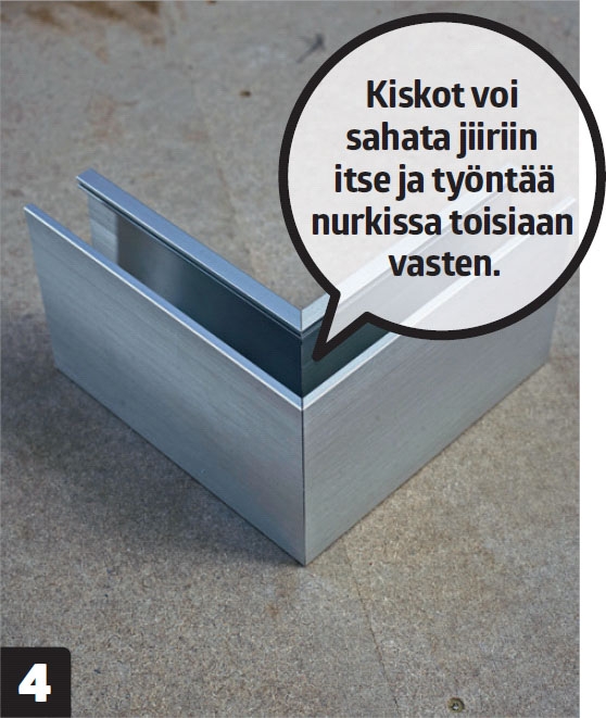 Nurkat: Voit sahata kiskot nurkissa jiiriin tai ostaa valmiita nurkkakiskoja ja lyhentää ne sopivan mittaisiksi.