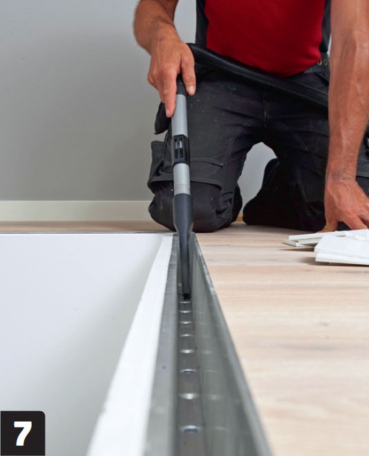 Tee tilaa kiskolle. Tämä vaihe on tarpeellinen vain, jos lattia avataan kiskon upottamista varten tai lattiaa vasta rakennetaan.