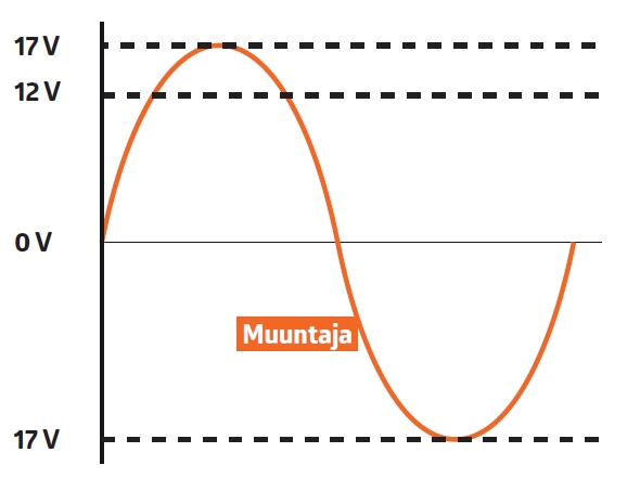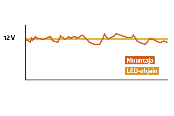 Vanhanaikaiset rautasydänmuuntajat tuottavat vaihtovirtajännitettä, joka kulkee vuorottain johdon toisesta päästä toiseen. Jos muuntajan tehollinen jännite on 12 V, maksimijännite on 17 V. Jos yhdistät rautasydänmuuntajaan tasaisen jännitteen LED-spotin, spottivalo valaisee ainoastaan (jos se ylipäätään toimii) silloin, kun jännite kulkee jompaankumpaan suuntaan.