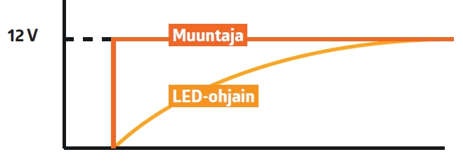 LED-kohdevalot tarvitsevat rauhallisen käynnistyksen, jossa jännite kasvaa tasaisesti ja hallitusti lyhyessä ajassa. Jotkin elektroniset muuntajat nostavat jännitteen välittömästi, ja toistuva kova käynnistys voi lyhentää LED-kohdevalon käyttöikää.