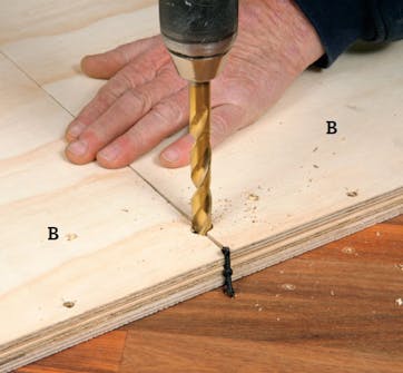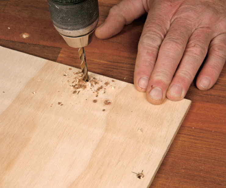 Sahaa levyt ja poraa reiät 6 mm:n poralla. Voit joko mitata ja porata reiät yksi kerrallaan tai asettaa kaksi yhdistettävää levyä päällekkäin ja porata reiät yhdellä kertaa. Siisti reikien reunukset upotusporalla.