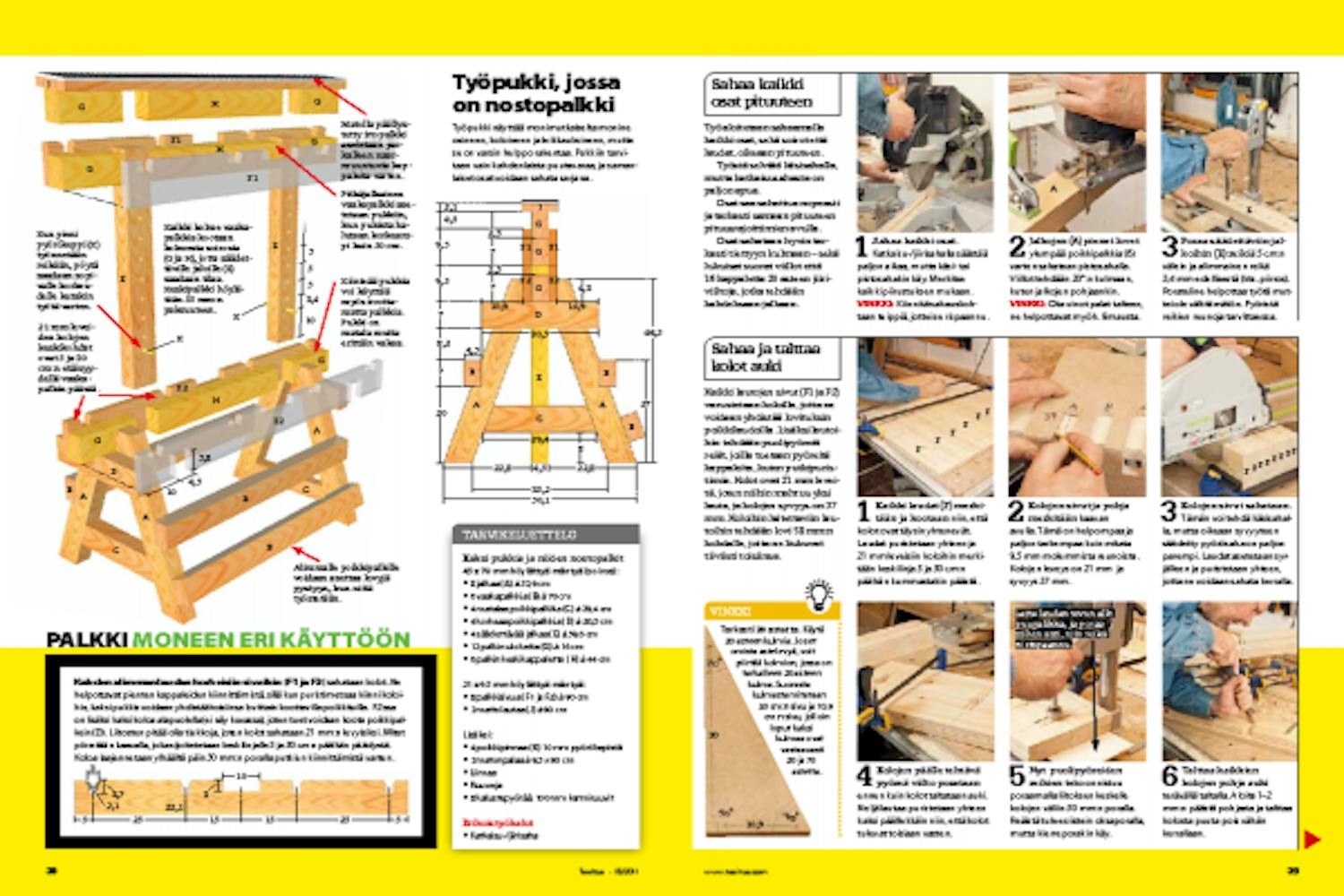 Kun työpukit rakentaa puusta itse, ne voi räätälöidä täysin omien projektien ja tarpeiden mukaan. Esittelemme muutaman yksinkertaisen työtehtävän, joissa pukeista on paljon apua. Keksi itse lisää. Toista pukkia voi hyödyntää esimerkiksi jiirilaatikkona.