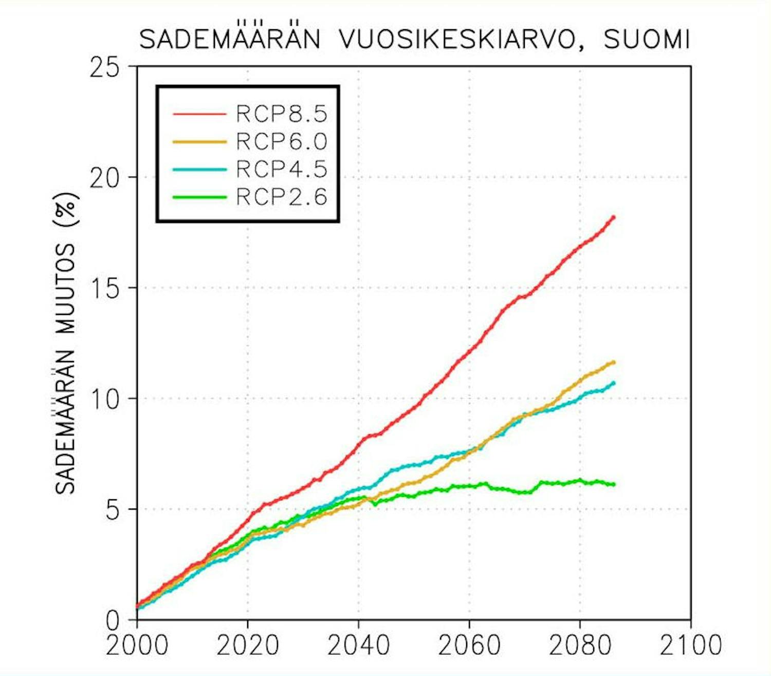 Sademäärien odotetaan lisääntyvän Suomessa keskimäärin 10–15 prosenttia vuosisadan loppuun mennessä. Suurin osa lisäsateista tulee talvisin. Talonomistajan kannalta pahinta on, että kesäsateista on tulossa rankempia kuin ennen.