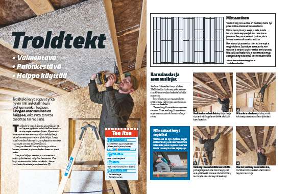 Kun kokonaiset levyt on asennettu, voit sahata päihin tulevat palaset. Tee niistä aluksi mieluummin liian pitkät kuin lyhyet ja sahaa tarvittaessa toiseen kertaan.