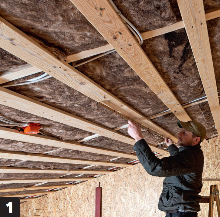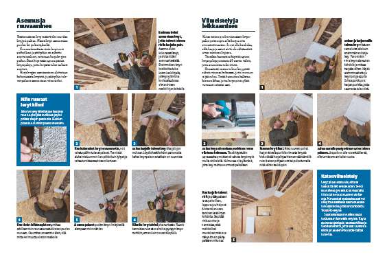 Ennen lautojen asentamista katto pitää mitata, sillä levyjen asentaminen aloitetaan keskeltä.