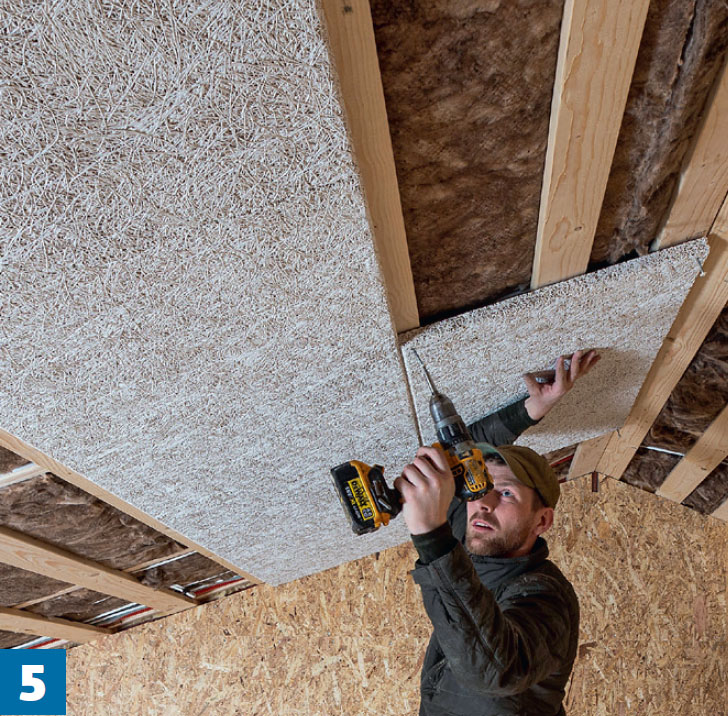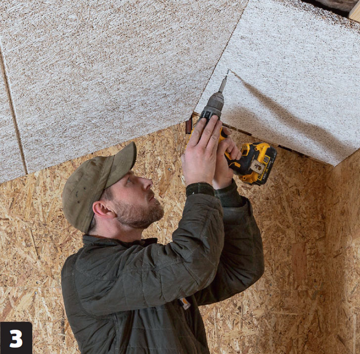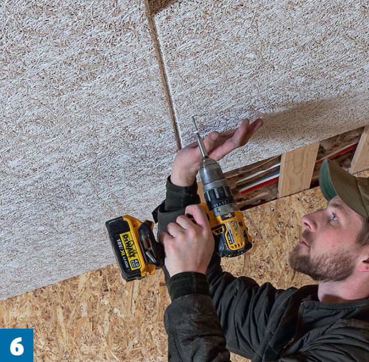 Harjalevyjen asentaminen aloitetaan kokonaisista levyistä, ja päätyihin tulevat palaset asennetaan viimeiseksi.