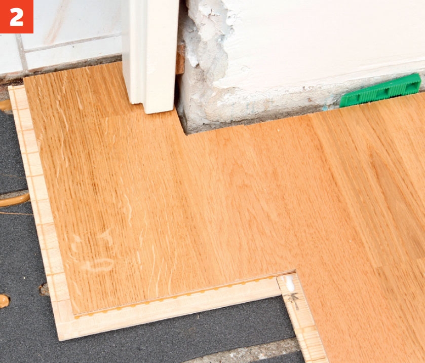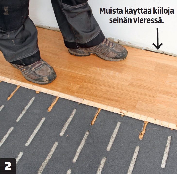 Jätä parketin ja seinän väliin vähintään sentin levyinen rako. Jätä tilaa myös muiden rakenteiden kuten putkien ympärille. Rako on helppo säätää sopivaksi muovikiiloilla.