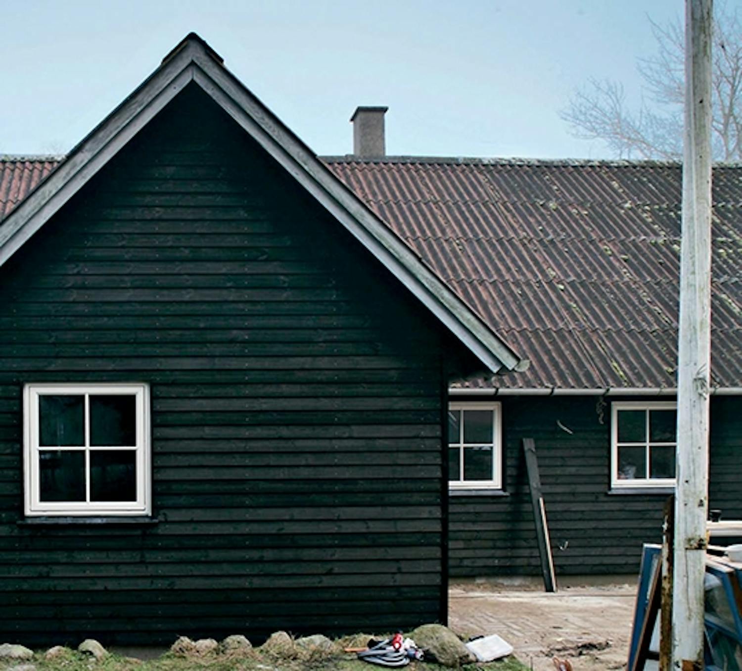 Ensin kuitenkin pannaan ikkuna-laudat paikoilleen. Me käytimme tähän mustaa liuskekiveä, koska se on erittäin kestävää. Lisäksi kivi näyttää todella kauniilta mustaa julkisivua ja valkoisia ikkunanpieliä vasten.