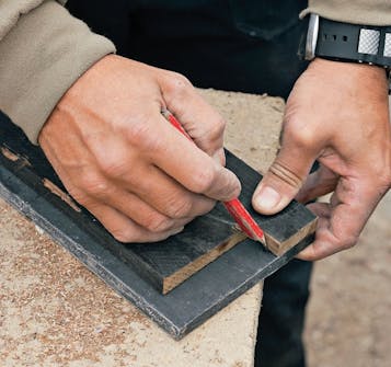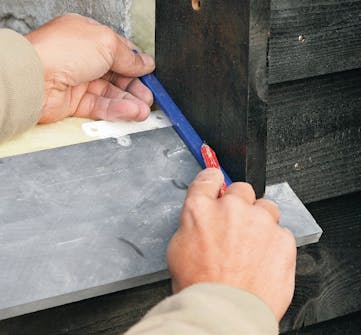 Tee puinen ikkunalauta, ennen kuin alat leikata mustaa liuskekiveä. Lauta on paljon edullisempaa, ja voit käyt-tää sitä mallina, kun merkitset lopullisen ikkunalaudan mittoja.
