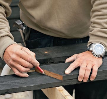 Jotta verhous tulee täysin vaaka-suoraan, merkitse mitat kumpaankin päähän julkisivua ja kiristä naru niiden väliin. Puu tarvitsee tilaa elääkseen, joten jätä pari millimetriä väliä joka neljännen verhous-laudan kohdalle.