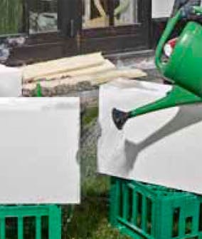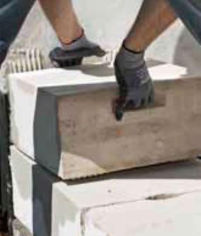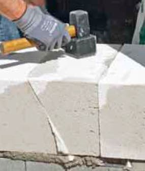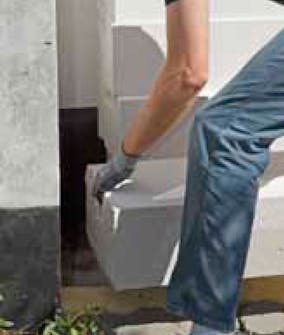 Kostuta harkot ennen asennusta. Varsinkin aurinkoisena päivänä on tär-keää kostuttaa harkot. Muuten ne imevät laastista kosteuden liian nopeasti, jolloin harkkojen kiinnitys heikkenee.