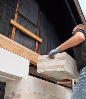 Kevytbetoniseinään on help-po asentaa ikkunoita, sillä materiaalia voi sahata, joten sovittaminen onnistuu hel-posti. Tästä on etua varsinkin silloin, jos aukon korkeus voi-daan sovittaa tiettyyn koko-naisten harkkojen määrään.