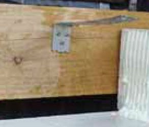 Vaikka leveät harkot ovat melko vakaita, ne kannattaa kiinnittää ulkoseiniin. Tässä kohteessa ne on kiinnitetty keskeltä kattopalk-kiin vahvalla reikänauhalla. Se on kiinnitetty ruuveilla palkkiin ja taivutettu sitten 90 astetta. Voit käyttää myös kulmarautoja.