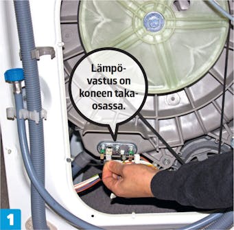Katkaise vesi, irrota virtajohto, vedä kone seinästä ja irrota lämpö vastuksen johdot. Irrota keskellä oleva mutteri, joka pitää lämpövastuksen paikallaan.